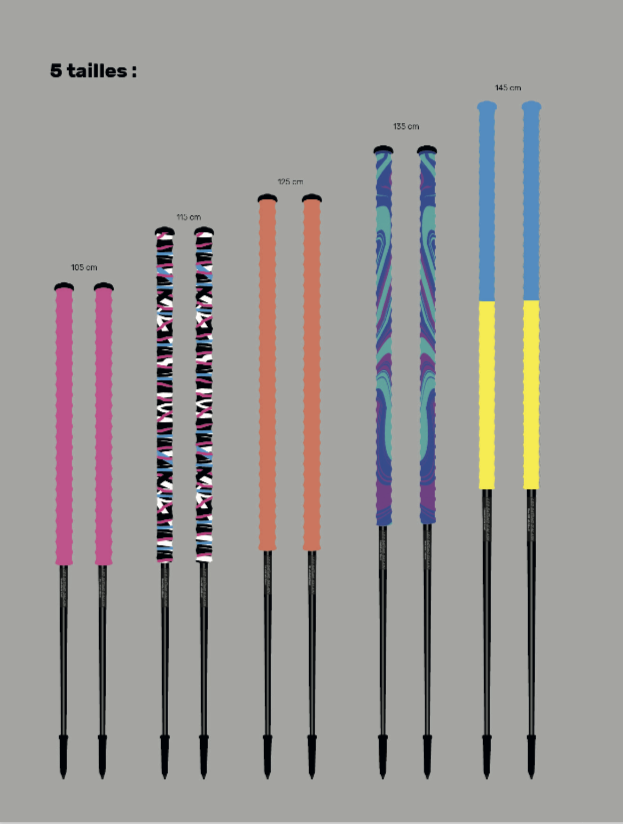 Bâtons ultra polyvalents en un seul brin avec un long grip ergonomique.